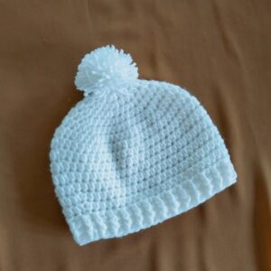 Handmade Crochet White Hat with Pompom